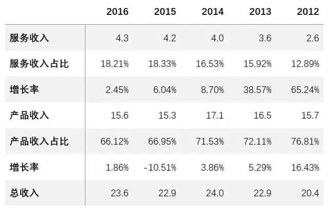 在天宝的业务结构中,地理信息服务对营收的贡献已经越来越大,如今占到总营收的18.2%。过去5年间,天宝产品收入的增长近乎于停滞,业务的总占比下降了10%,而服务方面的收入却在稳步增长。