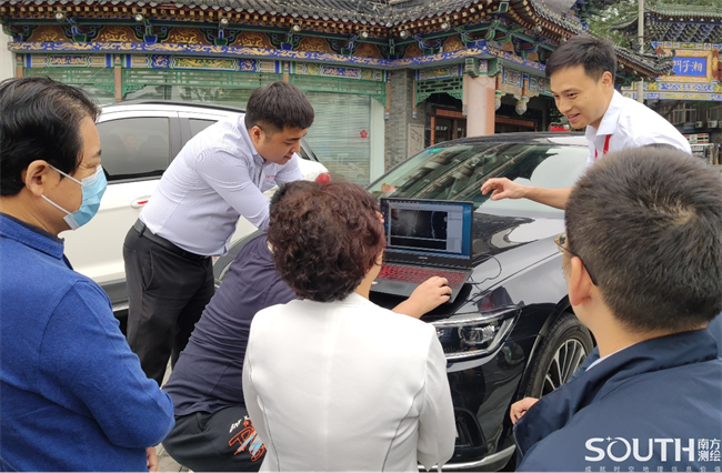 调研过程中,古天乐太阳集团城新型基础测绘西安试点工作项目负责人卜志坚向调研组作了整体汇报介绍,包括投入项目的人员、设备等,尤其对车载激光扫描的内、外业流程进行了详细说明,对实施过程中遇到的问题和解决方案进行了阐述,并展示了扫描获取的成果数据。