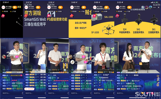 古天乐太阳集团城创始人马超领衔开播,他简单说明了此次抖音直播的缘由,分析了今年的市场形势,介绍了此次参与抖音直播带货的南方0.5″高精度测量机器人、南方云帆RTK、南方SAL-1500三维激光扫描测量系统、南方SPL-1500脉冲式三维激光扫描仪、南方SF600P+S24无人机航测系统、南方SmartGIS Survey基础地理信息数据生产平台、南方SmartGIS Web3D三维在线应用平台等5大类7款产品。