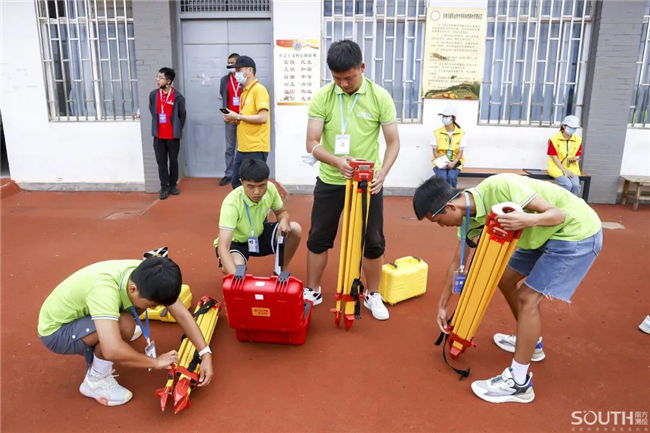 比赛现场,随着裁判员一声令下,参赛的选手们手提领取的设备快速进入指定赛区位置,各小组成员配合默契,一系列的测量操作随即有条不紊地开展。