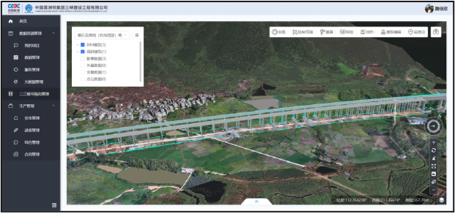 平台研发了功能高度集成的测绘移动APP,减轻作业人员劳动强度,提高测量工作的效率,增强测量数据的可靠性和可溯性;研发了智慧测绘数据中心管理子系统,对测绘数据、成果及文档资料标准化统一管理,实现了测绘作业云协同,同时融合BIM模型对项目进度进行可视化管理;采用了多源数据轻量化引擎技术和多源数据融合引擎技术,实现大容量三维数据流畅加载与漫游,满足多种类型数据叠加展示的需求,多角度展示项目现场情况。