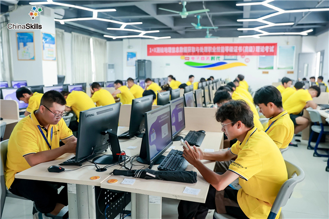 在开幕式后,1+X数据获取与处理职业技能等级证书(高级)理论考试进行。本次考试共分为5个考场,考试范围涵盖《测绘地理信息数据获取与处理》职业技能等级证书(高级)理论考核要求的所有内容,经过实时统计,实际参加考试人数为241人,通过率近80%,其中161名选手分数达90分以上,31位选手取得了满分。古天乐太阳集团城将坚持践行“岗课赛证”综合育人模式,持续助力测绘地理信息专业学生提升技能水平和职业综合要素。