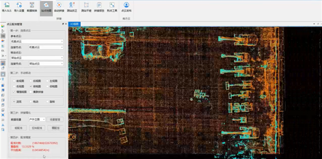 该软件是国内唯一支持不同品牌、不同格式、不同类型的激光采集设备点云拼接融合的软件,支持200站以上点云自动拼接。