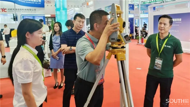 南方展台展出的NTS-582R20-ML机场净空测量仪、VLX可穿戴式移动扫描系统、精蛰双频管线雷达等创新型数据采集装备吸引了众多嘉宾驻足观看并试用,便捷、高效、精准的使用体验广获好评,南方智能软硬件一体化服务能力再次获得肯定。
