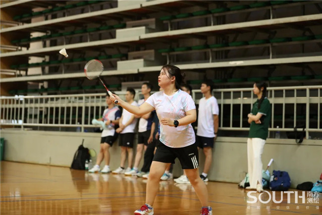 运动会在华南师范大学体育馆举行,现场气氛热烈。运动会比赛项目丰富多样,既有传统的篮球、羽毛球、乒乓球、跳绳等项目,也有趣味横生的十人九足、团体跳绳、拔河比赛等。