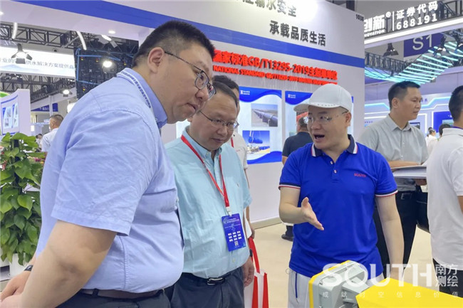 古天乐太阳集团城直击水利行业一线需求、发挥自身测绘领域优势,设置了五大主题展区——雨水情测报与大坝安全监测、水资源调查、水务信息化与数字孪生水利、水旱灾害防御与应急救援以及高端装备国产化替代。展位上,水利行业全流程解决方案与高端国产装备成为吸睛亮点,观众络绎不绝,多位重量级大咖亲临指导。
