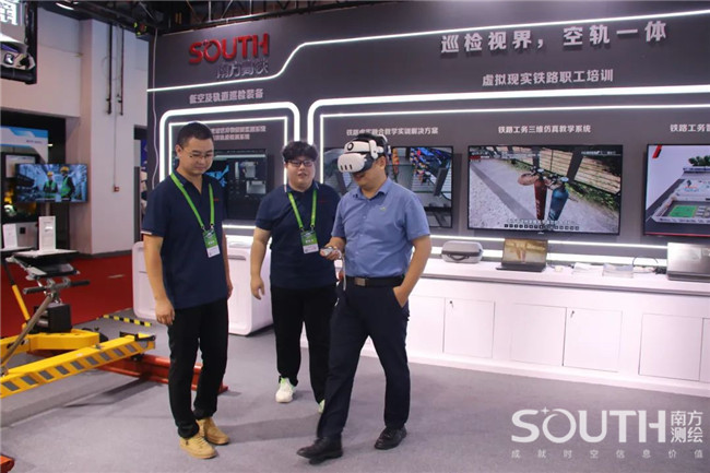 南方高铁技术在现场演示了全国产化0.5″测量机器人的轨道数据采集,吸引了众多专家驻足交流;VR铁路实训系统,逼真的虚拟检修场景,引得观众纷纷排队体验,获赞“技能培训的未来”; 此外,现场还演示了激光雷达异物监测系统的实时报警,其专业且成熟的方案,更是推动了安全运维领域的深度合作洽谈。