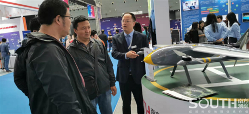 工作人员向国际友人交流介绍南方天巡MF-2500无人机