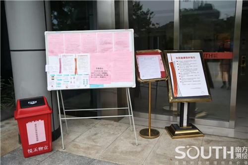 在办公楼外张贴疫情防控指引
