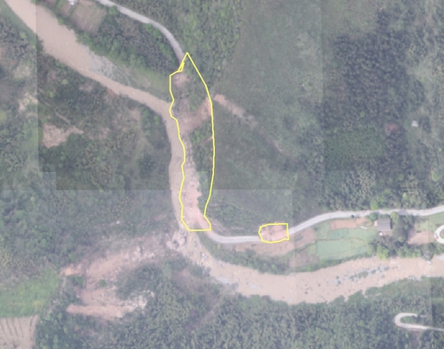 滑坡体及受损公路