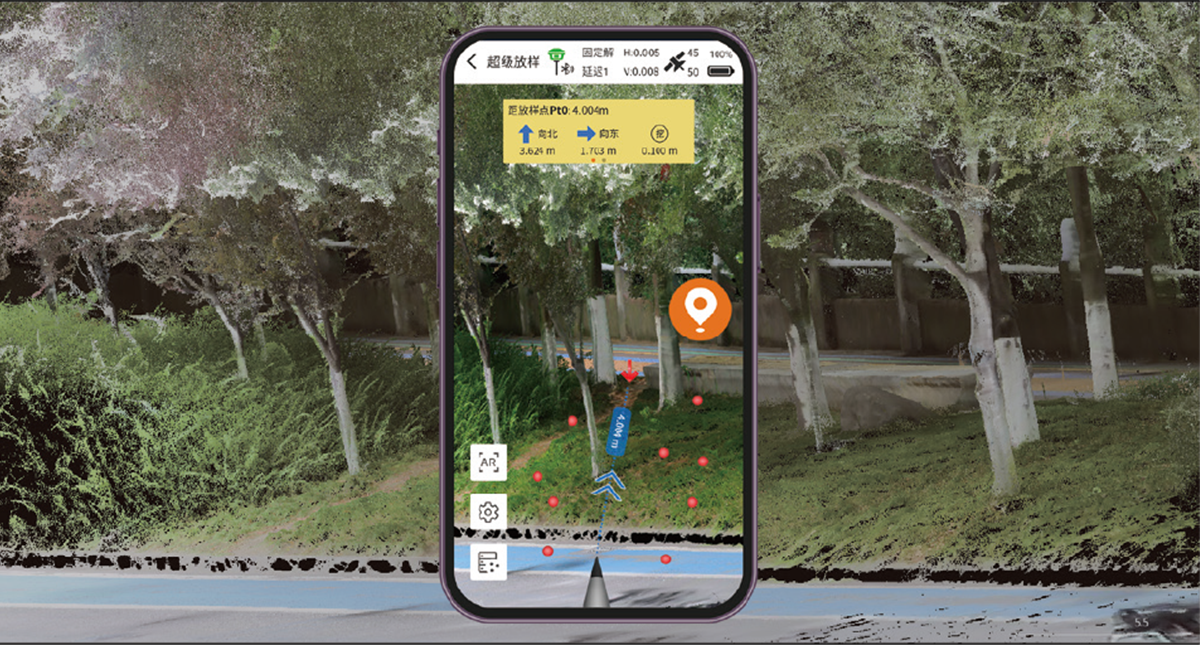 创新开发三维点云可视化交互系统,集成多目标智能识别与动态路径规划功能,支持基于场景语义分析的点位自动标定。系统通过增强现实(AR)界面实现放样轨迹的实时三维可视化投影,结合多传感器融合导航引擎(视觉、惯性测量单元与超宽带定位技术协同)提供高精度定位指引。