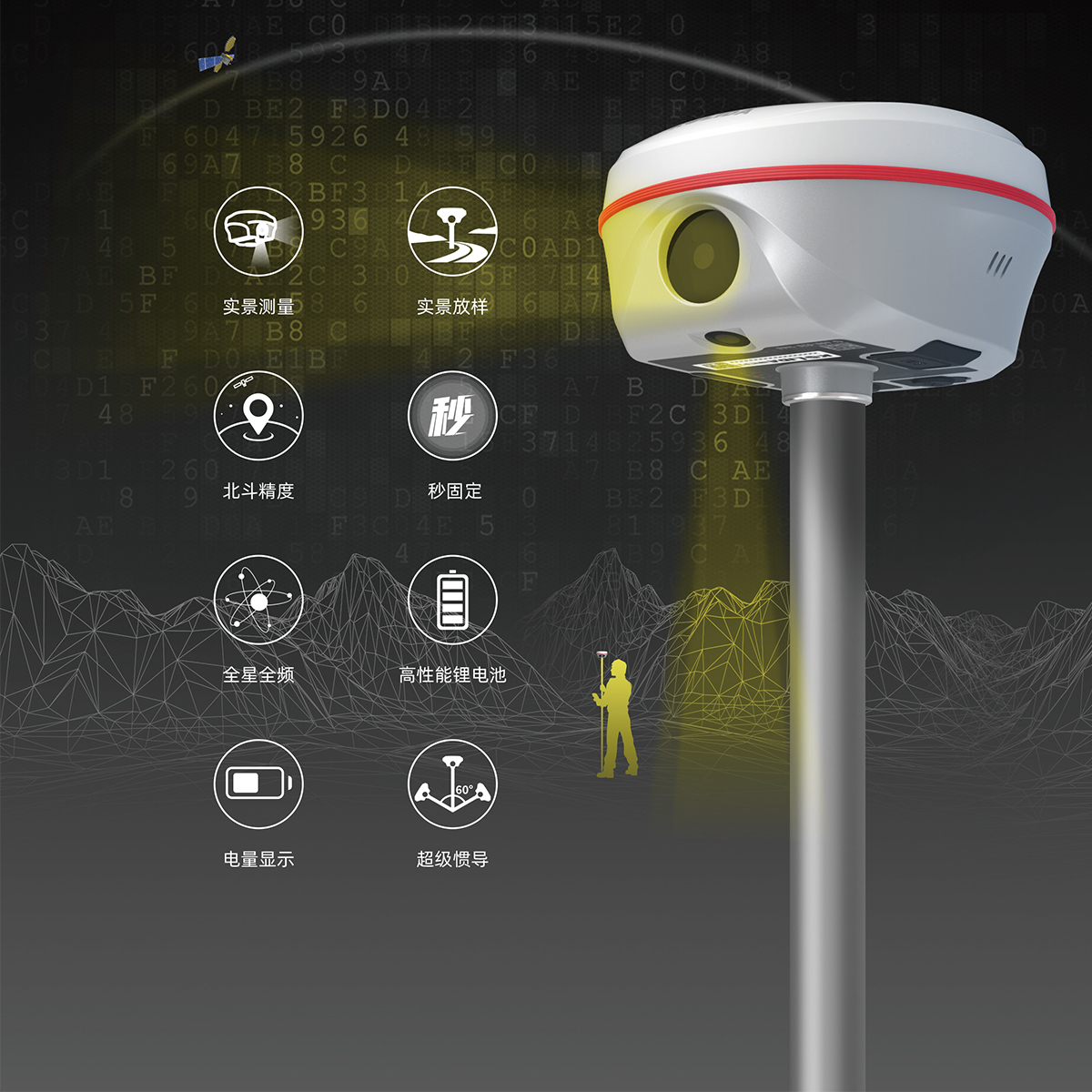 惯导倾斜测量 | 内置IMU惯性测量传感器,支持惯导倾斜测量功能,根据对中杆倾斜方向和角度自动校正坐标 |