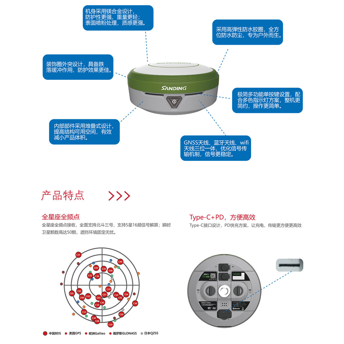 指示灯 | 4指示灯设计,卫星灯、差分信号灯、蓝牙灯、电源灯 |