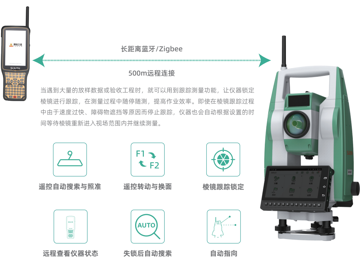 有合作目标 | 单棱镜测程:3500m,棱镜组测程:5000m |