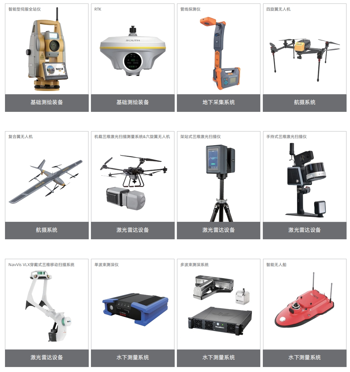古天乐太阳集团城自研各类型光电测量装备、无人机、三维激光扫描设备、倾斜摄影相机、无人船及水下地形测量传感器等专业测绘装备, 结合卫星遥感数据获取和生产能力,构建 “天-空-地-海”及室内外全空间覆盖的数据采集技术, 为实景三维中国建设提供高效、安全的时空数据采集装备。
