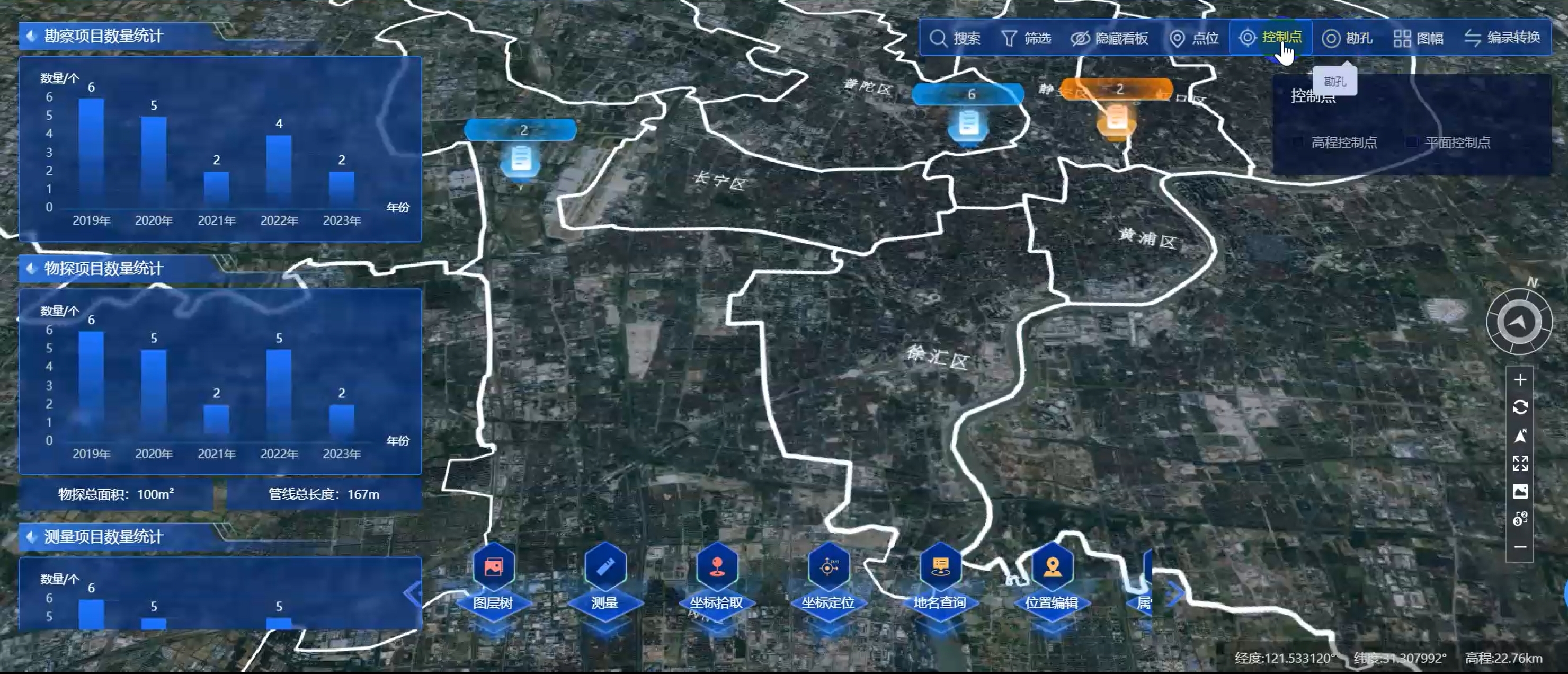 针对工程项自中的测绘生产与管理现状问题。以国产GIS平台为底层平台,定制开发了智慧测绘数字化管理平台,平台包括智慧测绘移动端子系统、智慧测绘数据中心管理子系统、智慧测绘三维可视化子系统。通过平台的使用,能够大幅提升作业效率、有效降低出错机率、提升测绘数据管理效能、丰富项目管理手段、提升成果数据利用价值。