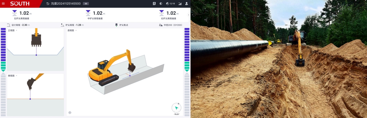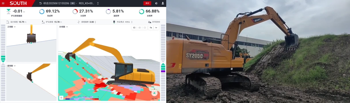 3、对操作手的经验技能要求低,操作手只需看着屏幕上的指引就能高效精准完成施工。